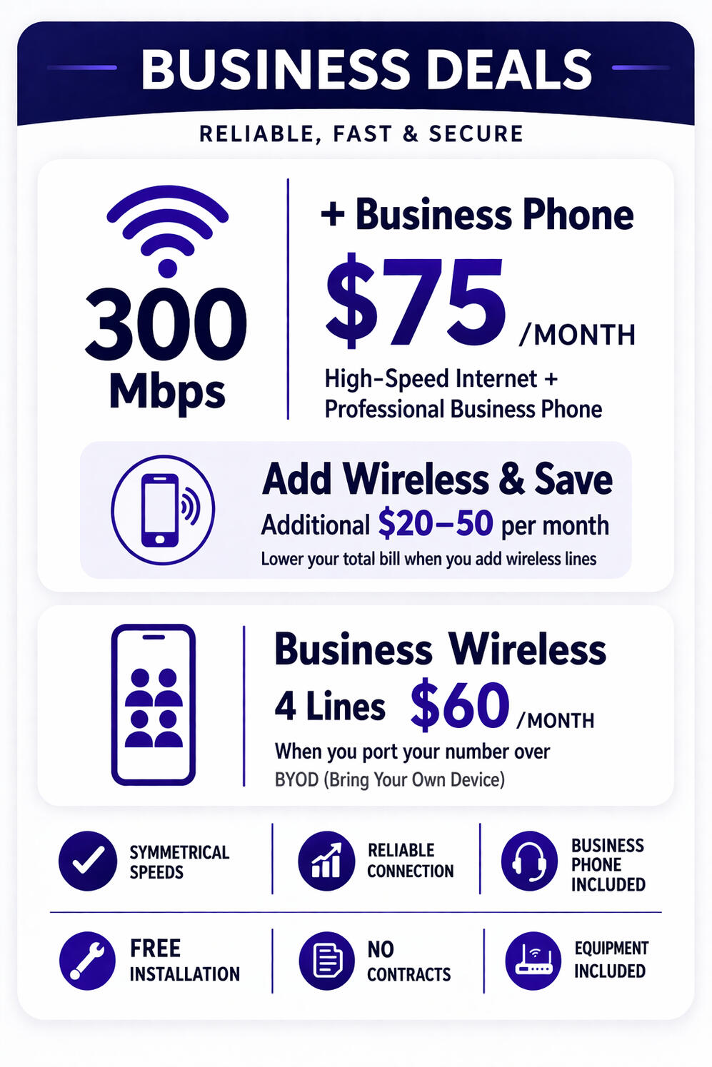 Business Internet & Phone Solutions• Business Internet (Fiber / Cable / Fixed Wireless, Satellite)
